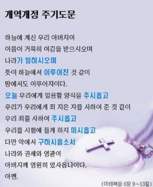 사도신경 (새번역) 나는 전능하신 아버지 하나님, 천지의 창조주를 믿습니다. 나는 그의 유일하신 아들, 우리 주 예수 그리스도를 믿습니다. 그는 성령으로 잉태되어 동정녀 마리아에게서 나시고, 본디오 빌라도에게 고난을 받아 십자가에 못 박혀 죽으시고, 장사된 지 사흘 만에 죽은 자 가운데서 다시 살아나셨으며, 하늘에 오르시어 전능하신 아버지 하나님의 오른편에 앉아 계시다가, 거기로부터 살아 있는 자와 죽은 자를 심판하러 오십니다. 나는 성령을 믿으며, 거룩한 공교회와 성도의 교제와, 죄의 용서와 몸의 부활과 영원한 생명을 믿습니다. 아멘. |