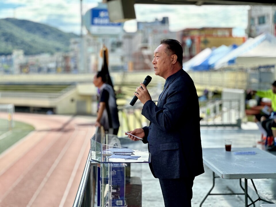 각 기관장 인사를 마치고 매년 외국인근로자 축구대회를 준비하고 진행하고 있는 장윤제 목사(사단법인 한국다문화희망협회 대표)의 인사가 이어졌다. 장윤제 목사는 “추석 연휴에 비가 많이 와 걱정했다. 하지만 행사가 시작하는 지금 비가 개어 정말 감사드린다. 여기 함께 모인 네팔, 미얀마, 베트남, 캄보디아, 태국 그리고 한국선수단과 응원단 여러분을 환영하고 축복한다. 또한 대회를 위해 수고한 광주시기독교연합회 임원들과 이하 광주시 목회자축구선교단 모든 분께 감사드린다”라고 인사했다.