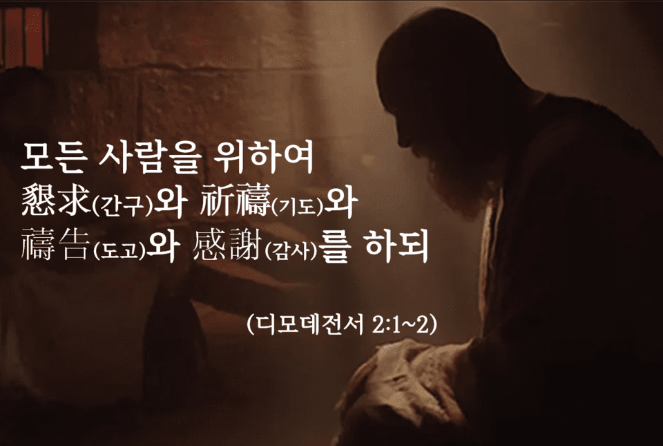 *본문 말씀: “그러므로 내가 첫째로 권하노니 모든 사람을 위하여 간구(懇求)와 기도(祈禱)와 도고(禱告)와 감사(感謝)를 하되 임금들과 높은 지위에 있는 모든 사람을 위하여 하라”(2:1~2상)