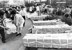 예배당이 세들어 있는 건물 바로 앞 8차선도로는 진압군과 대치한 시민군의 바리케이트가 위치해 있고 바로 옆 전봇대는 시위군에게 주먹밥을 나눠주는 곳이기도 했다. 어느 날엔 진압군이 넘어오지 못하도록 타이어로 겹겹이 쌓아올려 불을 질렀다. 타이어가 타는 열기에 아스팔트가 녹아내렸고 타이어 타는 냄새가 코를 찔렀다.