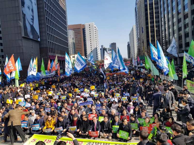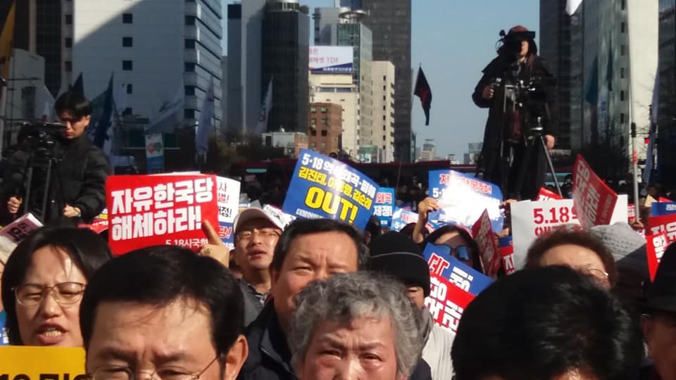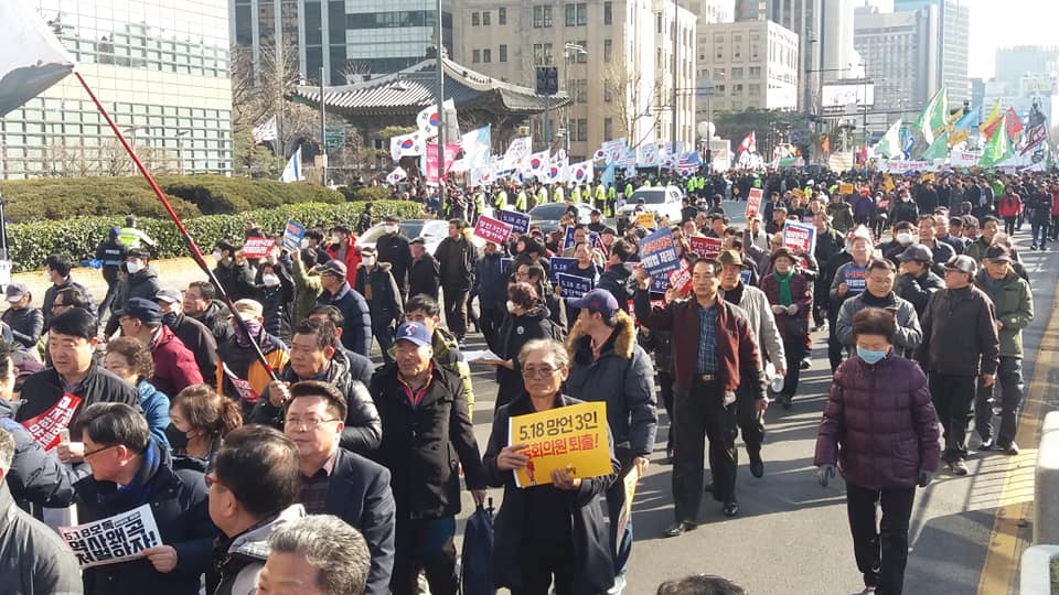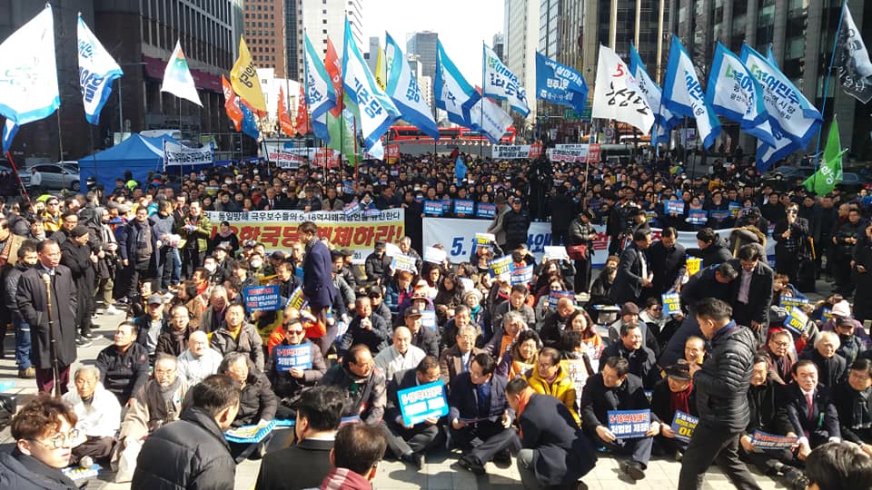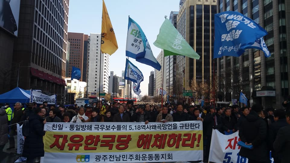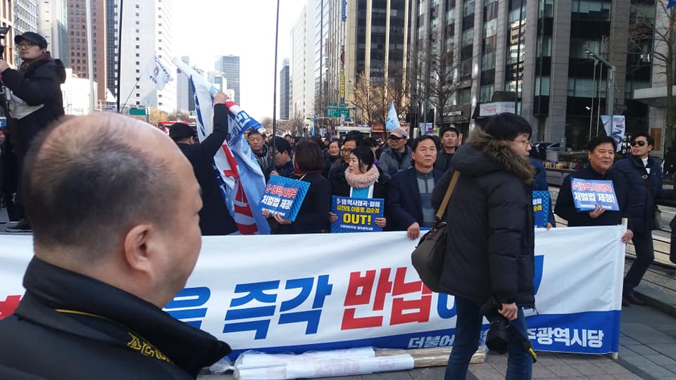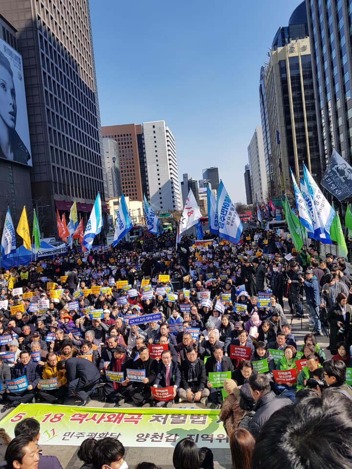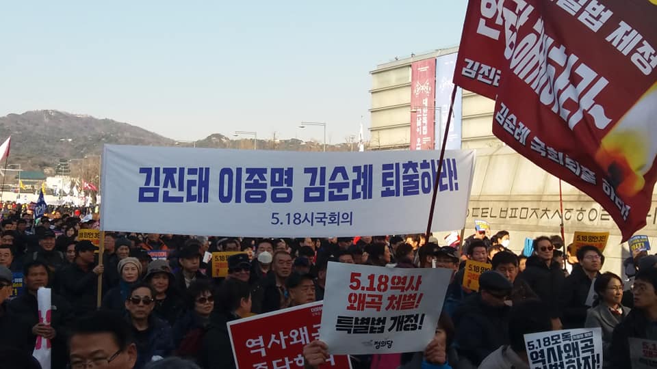 <5.18역사왜곡망언 규탄 범국민대회>가 지난 2월 23일 서울 청계천광장에서 개최되었다. 여기에는 광주에서 시민들이 1,500명 가량 상경하여 참석하였다.