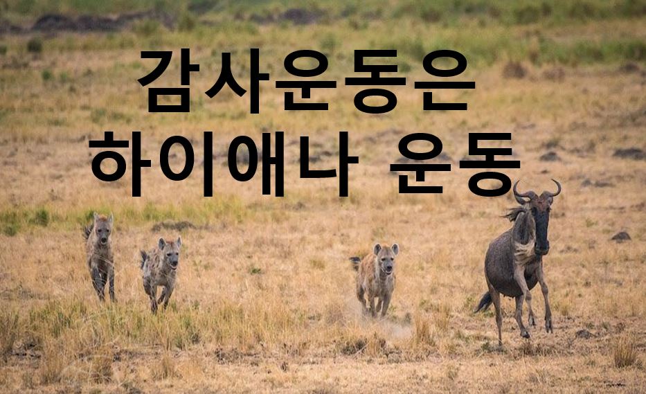 감사운동을 하는 데서도 하이에나의 특징처럼 연대의 귀재, 질서를 지키며 리더 우선 습관을 끝까지 버리지 않는 집념, 지혜와 용감성, 삶을 즐기는 자세 등을 배울 필요가 있다.