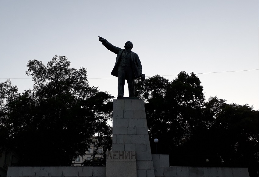 | 블라디보스토크 역 광장의 래닌 동상 동쪽을 가리키며 '동방을 정복하라' |