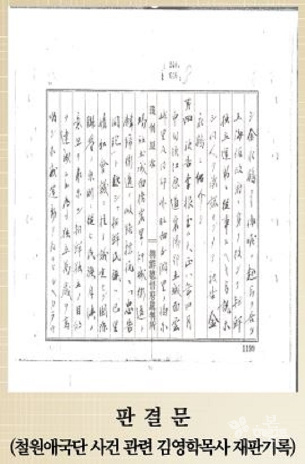 | 철원애국단사건 판결문(최양섭 목사 사진 제공) |