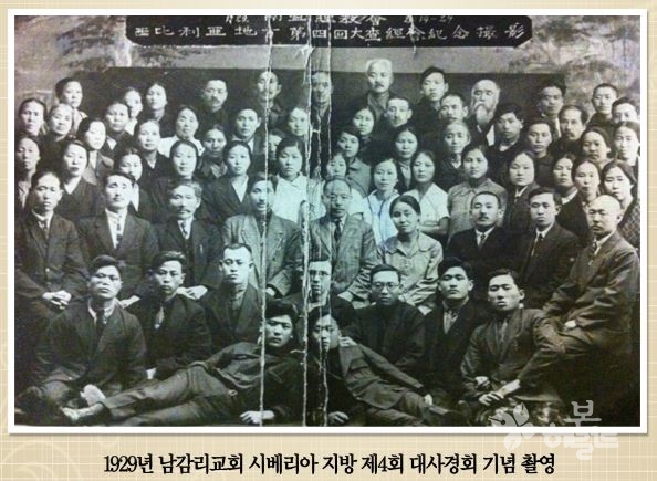 | 시베리아 지방회 기념사진. 중앙에 김영학 목사 (최양섭 목사 사진 제공) |