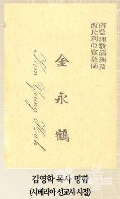 | 김영학 목사 명함 (최양섭 목사 제공) |