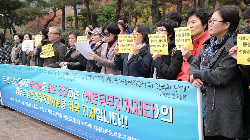 하지만 동성애·동성혼 합법화 반대를 위한 노력에도 불구하고 현실적으로 어려움이 많은 것이 사실이다. 차학연은 지난 1월 10일 서울고법을 방문해 ‘동성애 확산 단체의 법무부 산하 재단됨을 반대하는 국민들의 탄원서’ 4만 2458장을 제출했다. 동성애자 단체인 비온뒤무지개재단이 법인화되면 법인 자격으로 정부에 동성애 옹호·조장 사업을 공개적으로 요구할 것을 우려해 탄원서를 제출한 것이다. 법무부도 비온뒤무지개재단이 법무부 소관 단체가 될 수 없음을 밝혔으나, 비온뒤무지개재단은 법무부를 상대로 서울 행정법원에 행정소송을 벌여 승소를 했고, 법무부가 다시 고등법원과 대법원에 상고했지만 결국 지난 7월 27일 대법원은 심리불속행으로 상고를 기각하면서 비온뒤무지개재단의 손을 들어주고 말았다.