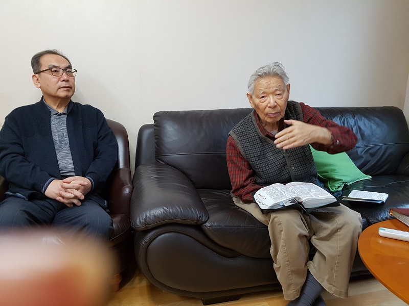 | 사진 좌측에 아들 지규철 집사(본푸른교회)와 생전의 지갑섭 장로 |