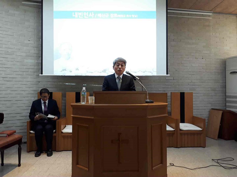 기도가 마친 후 최양섭 목사(대죽교회, 사무국장)의 약력 소개가 있었다. 최 목사는 한국교회와 감리교단이 김영학 목사을 잊고 있었을 때에 그의 삶을 발굴하고 재조명하는데 결정적인 수고를 했다.