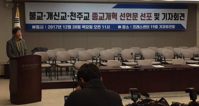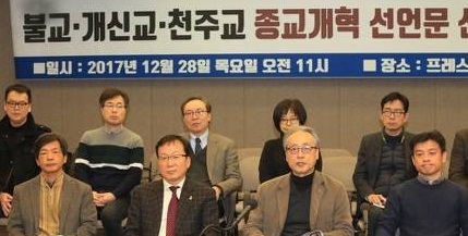 한국의 3대 종교인 불교·개신교·천주교의 적폐청산을 위한 <종교개혁선언>이 있었다. 지난 12월28일 종교개혁선언 추진위원회(공동대표 박광서ㆍ이정배)는 프래스센터에서 기자회견을 갖고 <불교ㆍ개신교ㆍ천주교 종교개혁선언문>을 발표하고, 서명자 2,175명을 공개했다.