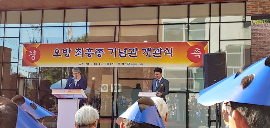지난 10월 16일 광주광역시 남구 양림동 유진벨기념관 앞에 오방 최흥종 목사 기념관이 개관식을 가졌다. 기념관 건물은 지난 해 말에 준공되었지만, 전시실을 꾸미느라 이번에 오픈하게 되었다. 오방기념사업회가 주관하여 치르게 되는 개관식 참석자들에게는 최흥종 목사 일대기인 <오방선생 최흥종>을 선물하였다.