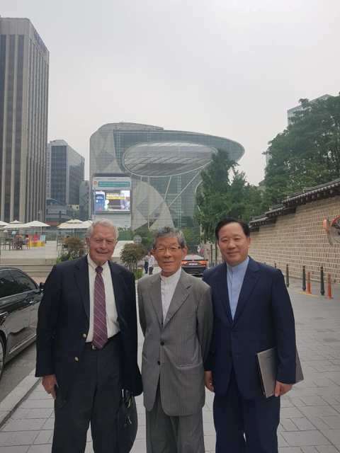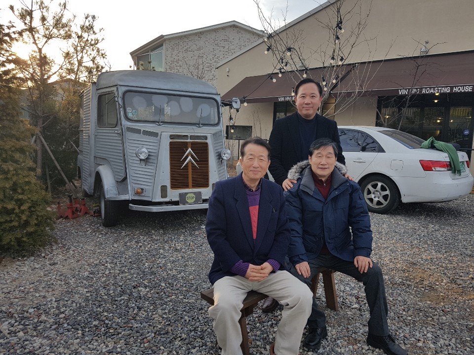 | 정순훈총장(왼쪽), 주욱중목사(오른쪽, 조은비전교회), 최원영목사(본헤럴드 발행인). VIN103까페 마당에서(구리 토평동) |