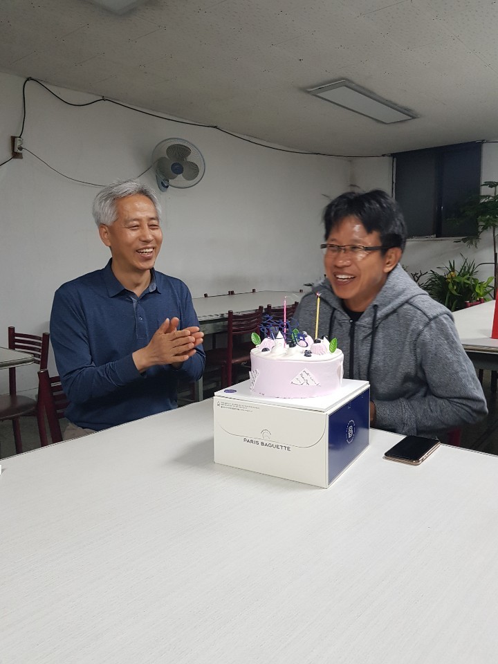 | 미얀마 성도가 일하는 사업장 심방하여 생일 축하 하는 이명재목사 |
