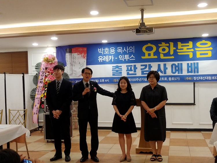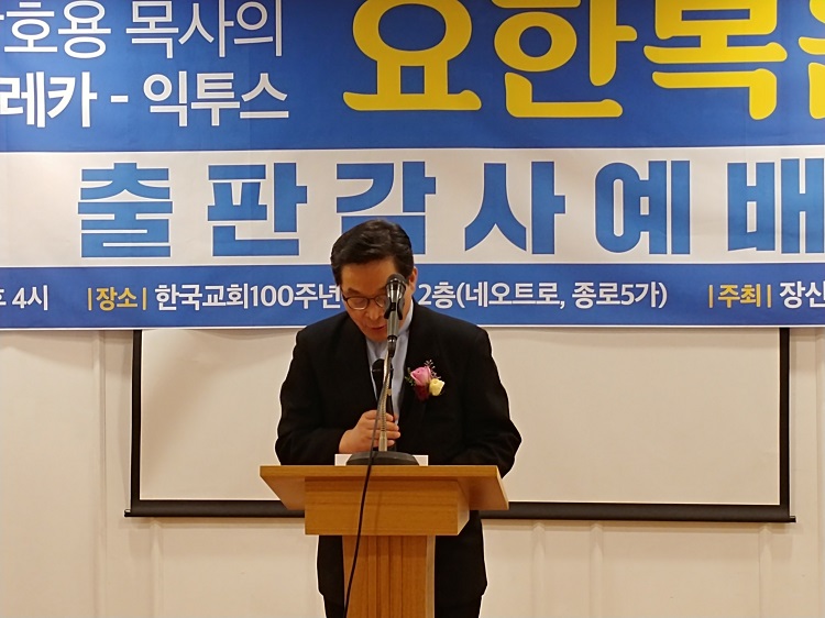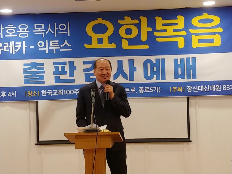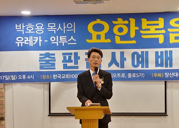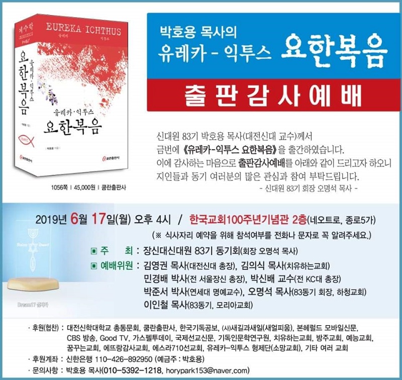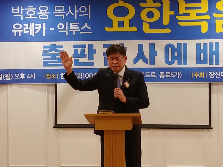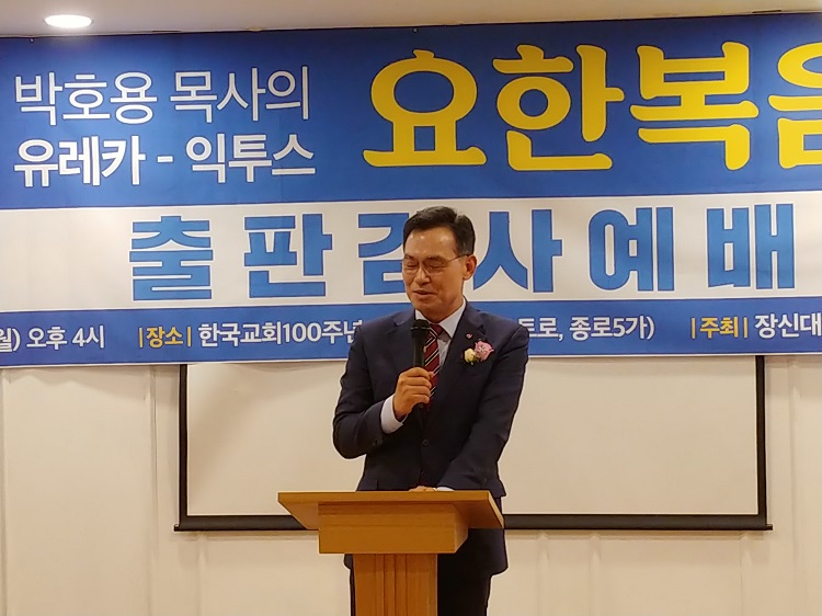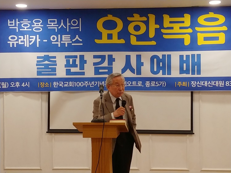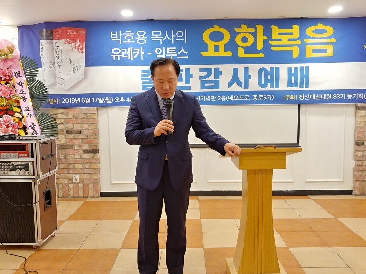우리 박호용 박사님께서 이번에 <유레카 익투스 요한복음>이란 거대 저술을 내놓으셔서 다들 놀람과 경탄으로 기뻐, 이런 축하의 자리를 마련한 줄로 알고 있습니다.