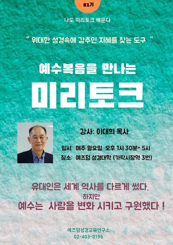 Q5. 목사님만의 성경공부라고 할 수 있는 <미리토크>가 무엇인지 쉽게 설명해주실 수 있나요?