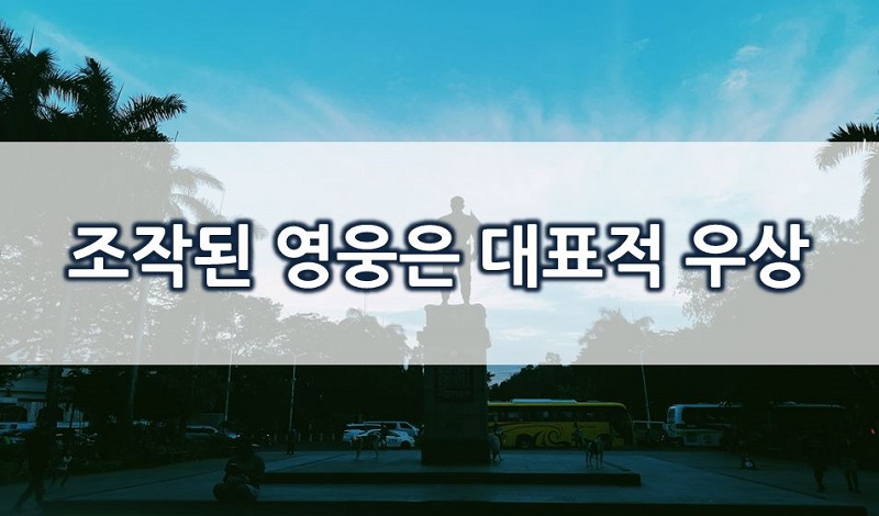 영웅주의는 사이비 영웅을 낳는 산실이다. 국가가 빠지기 쉬운 함정이 조국애를 내세워 국민들을 영웅주의의 구렁텅이로 몰아넣는다는 점이다. 지도자를 신격화하는 것은 독재국가나 전체주의 국가에서는 흔하다. 이념과 사상이 뒤범벅된 조국에는 사실과 신화가 뒤섞여 있다. 우매한 군중을 일깨우는 것은 동시대를 살아가는 지성인들의 도덕적 책무다. 거짓을 밝히고 역사의 왜곡된 기술(記述)을 바로잡아야 나라의 기강이 선다. 교계에서도 서로 영웅상을 세우고 그 상에 금칠을 하듯 금력으로 자리를 사고파는 망동(妄動)이 그치지를 않는다.