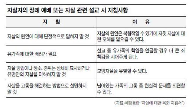 여기서 자살에 대한 교회의 대응을 소개하고 마치려 합니다.