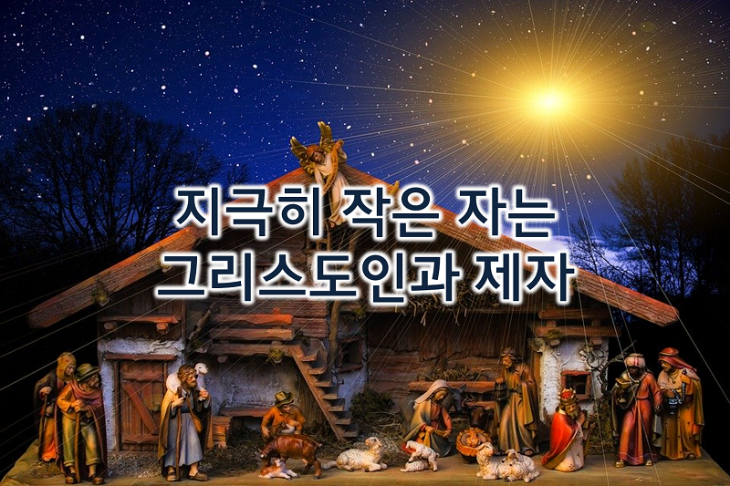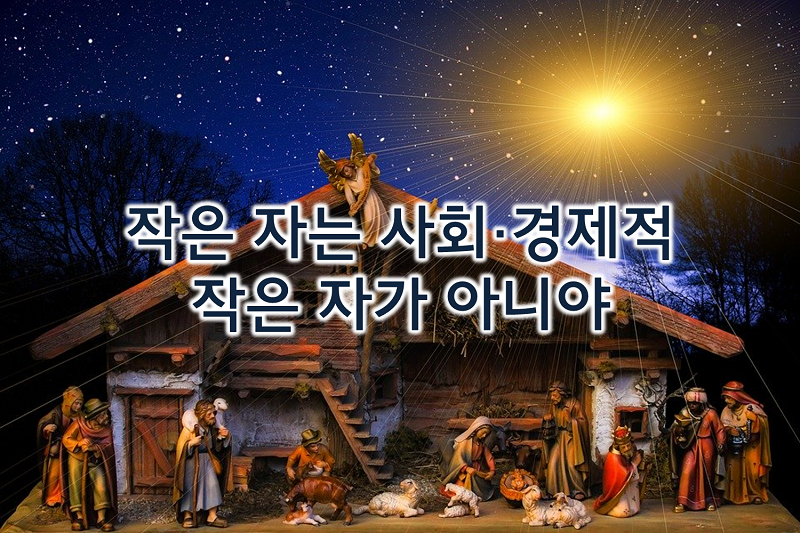 이 성탄 계절에 복음을 위하여 스스로 가난해지고 아주 작아진 그들을 한번 돌아보자. 복음을 위해 수고하는 그들을 찾아보고 격려하고 축복하고 기도해주자. 바로 내가 해야 할 그 일을 그들이 하고 있는 동역자들이다, 아울러 나 역시 곧 지극히 작은 자의 삶을 살고 있는지 돌아보자. 우리 그리스도인은 이미 가장 큰 나라를 얻은 사람들이다. 세상 것과 비교 불가한 사람들이다. 그래서 세상에서 지극히 작은 자의 삶이 부끄럽지 않다, 가장 낮은 구유에 오신 예수님은 오늘 우리의 모습을 미리 보여준 자화상이다. 오늘 우리는 성탄절을 통해 이것을 다시 돌아보는 시간이 되어야 할 것이다.