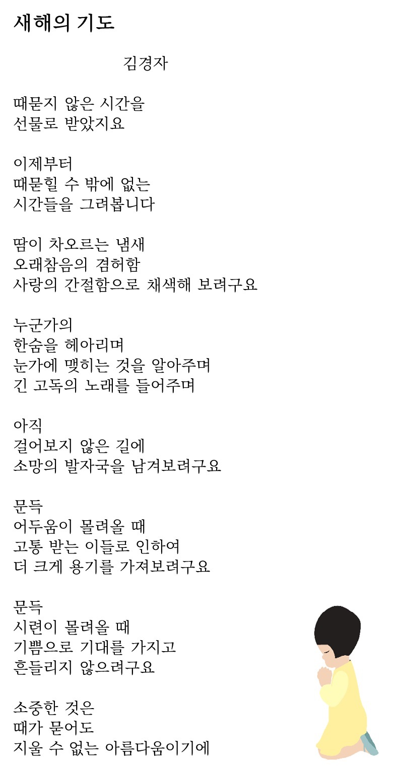 이전 기사보기 다음 기사보기 【김경자목사】Psalms 151, 새해의 기도 스크롤 이동 상태바 현재위치 문화 【김경자목사】Psalms 151, 새해의 기도 입력 2020.01.10 16:05 글자 크기 본문 글씨 키우기 본문 글씨 줄이기 프린트 인쇄하기 SNS 기사보내기 기사저장 다른 공유 찾기 이 기사를 공유합니다 닫기 김경자목사(예장통합), (춘천)변화산기도원원장, (재)본월드미션 협동목사, 본푸른교회협동목사, 위담한방병원원목 저작권자 © 본헤럴드 무단전재 및 재배포 금지 관련기사 【김경자 목사】 Psalms 151, 『사랑』 윤홍식 jesuspointer@naver.com 다른기사 보기 개의 댓글 회원로그인 작성자 비밀번호 댓글 내용입력 댓글 정렬 최신순 추천순 답글순 BEST댓글 BEST 댓글 답글과 추천수를 합산하여 자동으로 노출됩니다. 닫기 더보기 댓글삭제 삭제한 댓글은 다시 복구할 수 없습니다. 그래도 삭제하시겠습니까? 비밀번호 댓글수정 댓글 수정은 작성 후 1분내에만 가능합니다. 본문 / 400 비밀번호 내 댓글 모음 닫기